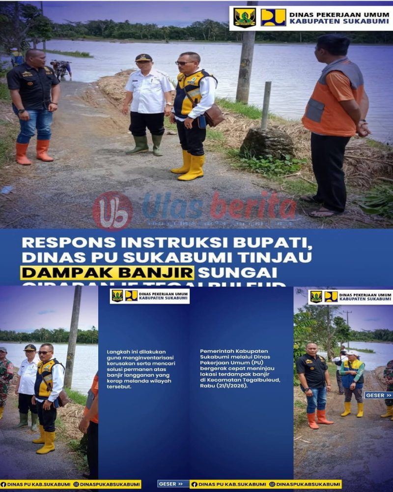 SUKABUMI, ulasberita.com -Terjadinya  Banjir diketahui dipicu oleh Meluapnya Sungai Ciparanje Akibat Hujan Berintensitas Tinggi yang Mengguyur Wilayah Selatan Sukabumi. Luapan Sungai yang melintasi Desa Buniasih dan Desa Tegalbuleud itu tertahan oleh Aliran Sungai Cibuni di bagian hilir, sehingga menyebabkan ratusan hektare lahan pertanian produktif di kawasan Denuh terendam.Rabu (21/1/2026).